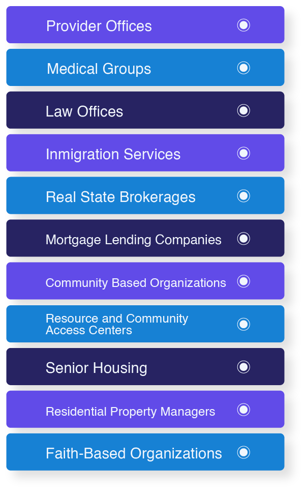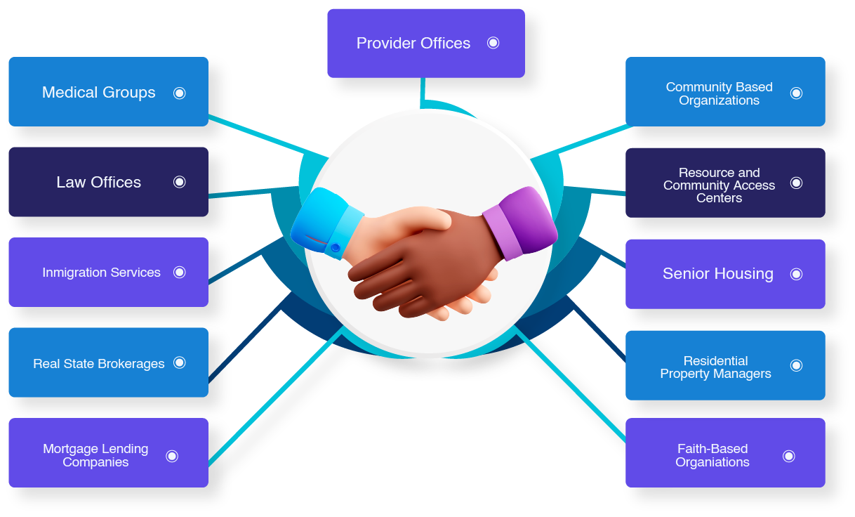 clients. Whether you’re a provider’s office, medical group, community-based organization, senior housing facility, or a faith-based organization, you can earn cash incentives by referring clients to us through our trusted referral partnership program.